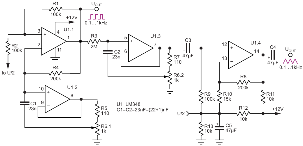 Электрическая схема функционального генератора с электронной регулировкой эквивалентных емкостей конденсаторов