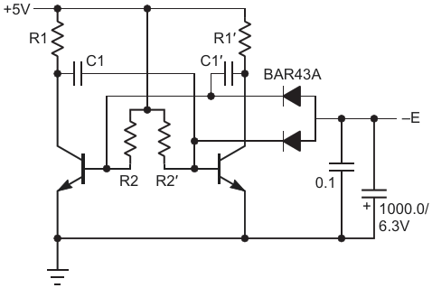Вторая схема, позволяющая получить истинно нулевое выходное напряжение операционного усилителя, основана на симметричном мультивибраторе и отличается от первой лучшим КПД
