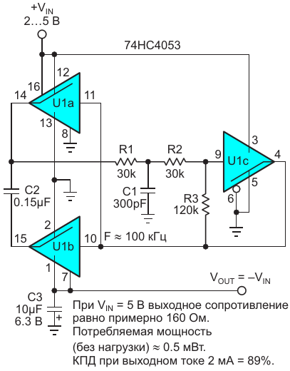 Рисунок 1. Универсальная и удобная микросхема xx4053 служит основой для дешевого, эффективного и точного инвертора напряжения