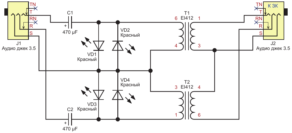 Рисунок 1. Схема универсального адаптера для звуковой карты