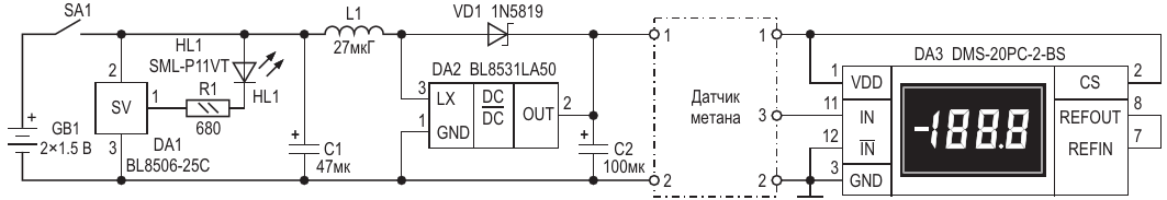 Бытовой датчик утечки метана