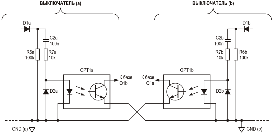 Оптопары обеспечивают полную изоляцию перекрестно связанных переключателей