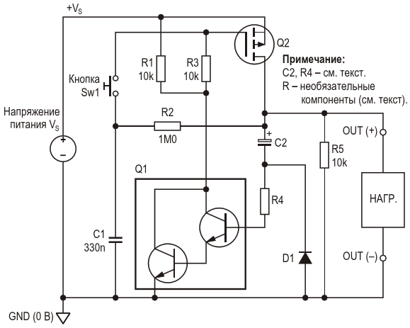 Рисунок 3. Незначительные изменения в основной схеме переключателя позволяют ему отключаться через заданный промежуток времени