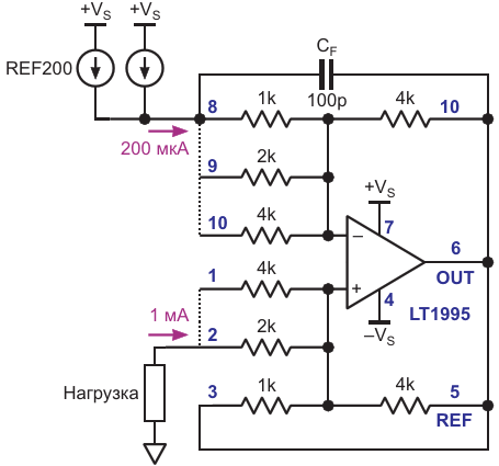 Рисунок 3. В микросхему LT1995 втекает ток, в пять раз превышающий ток опорного источника
