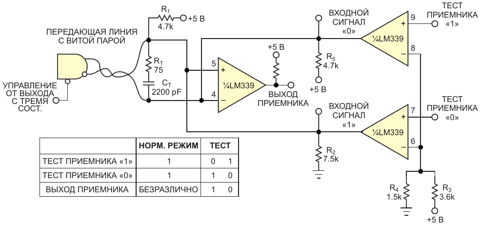 Выбрав нужное устройство, можно сделать дифференциальный линейный приемник с возможностью программируемого самотестирования