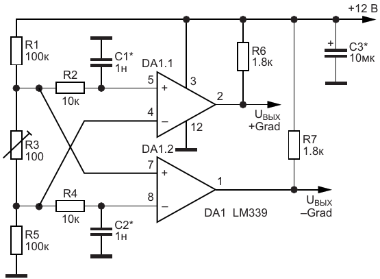Рисунок 2. Градиентный детектор уровня входного сигнала с раздельной индикацией знака градиента