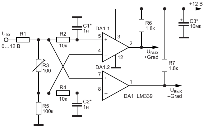 Рисунок 2. Градиентный детектор уровня входного сигнала с раздельной индикацией знака градиента