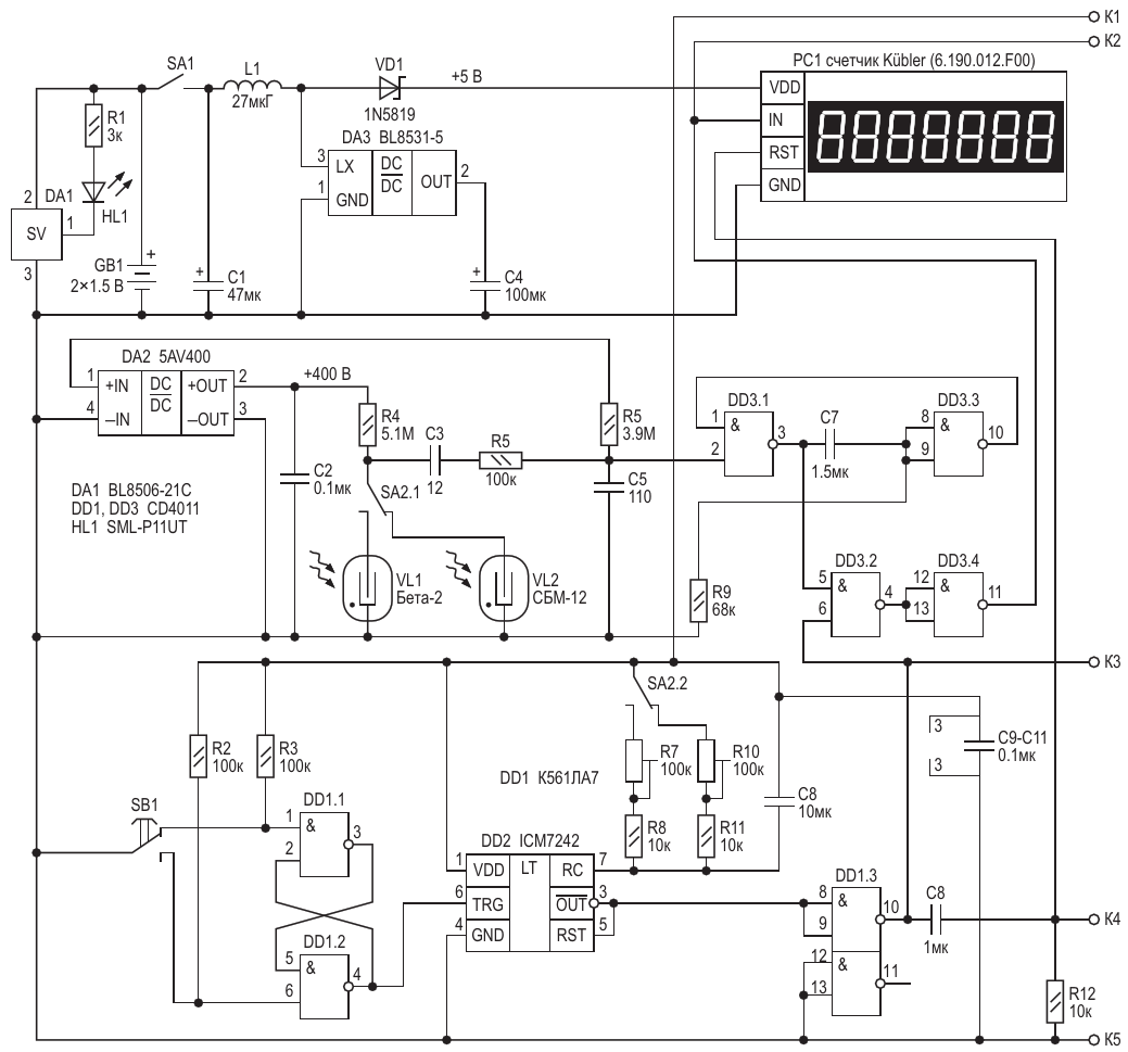 Рисунок 3. Схема высоковольтного блока питания для дозиметра