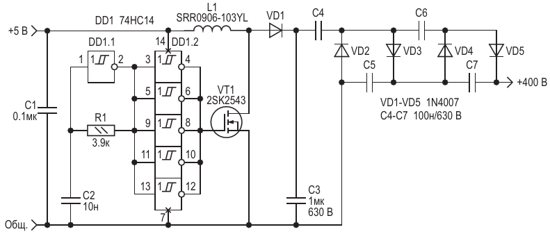 Рисунок 3. Схема высоковольтного блока питания для дозиметра