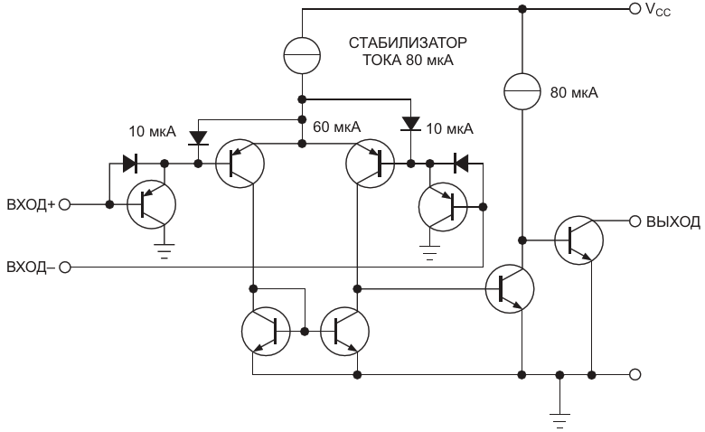 Рисунок 3. Внутренняя конструкция компаратора LM193 требует, чтобы входные напряжения поддерживались на 2 В ниже напряжения положительной шины