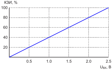 Рисунок 2. График зависимости «Входное напряжение - коэффициент заполнения импульсов»