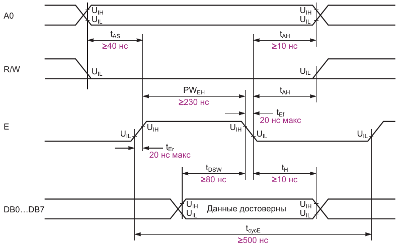 Рисунок 2. Временная диаграмма записи жидкокристаллического индикатора MT-20S2M