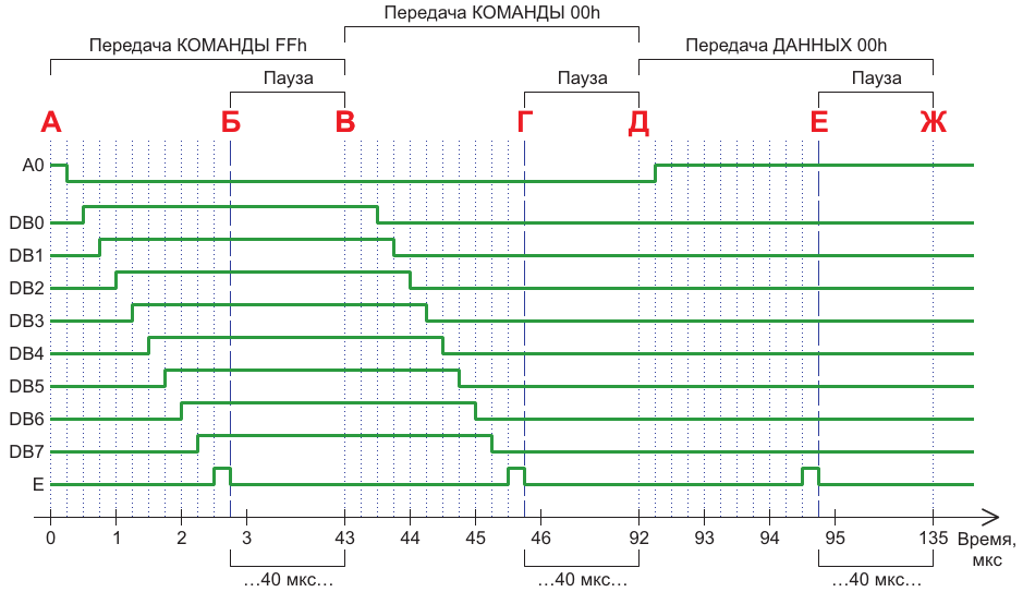 Рисунок 2. Временная диаграмма записи жидкокристаллического индикатора MT-20S2M