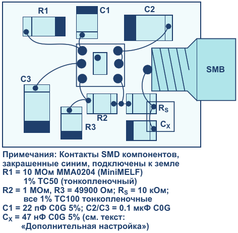 Рисунок 3. Расположение компонентов на плате генератора шума