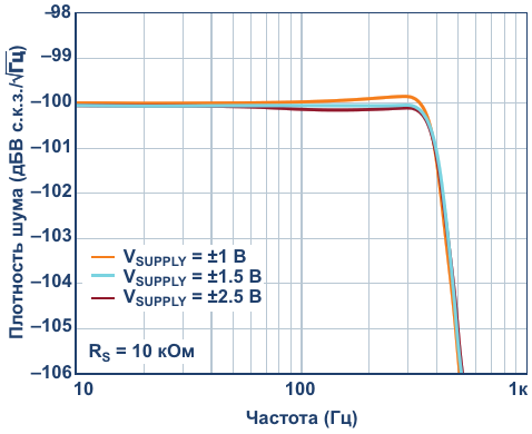 Рисунок 6. Плотность выходного шума при различных напряжениях питания