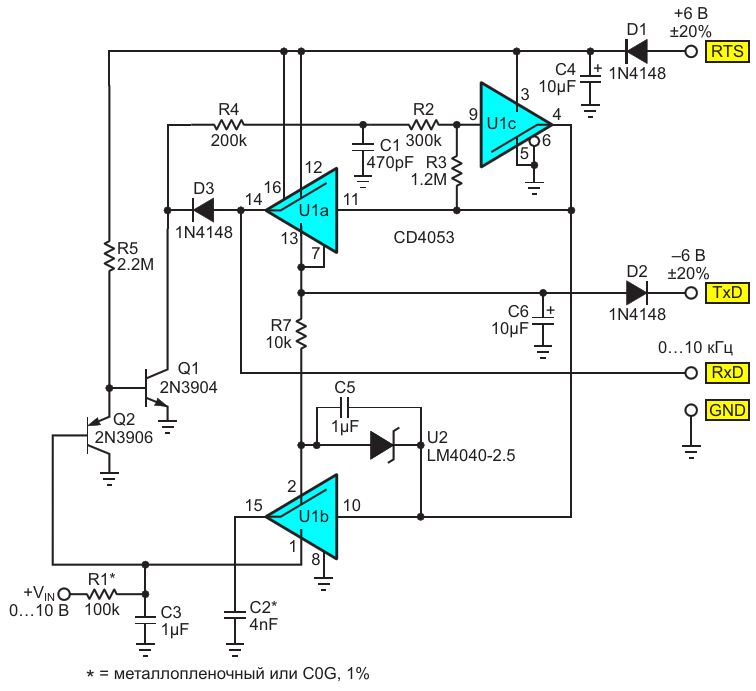 10-килогерцовый ПНЧ работает с обычным портом RS-232 и питается от него