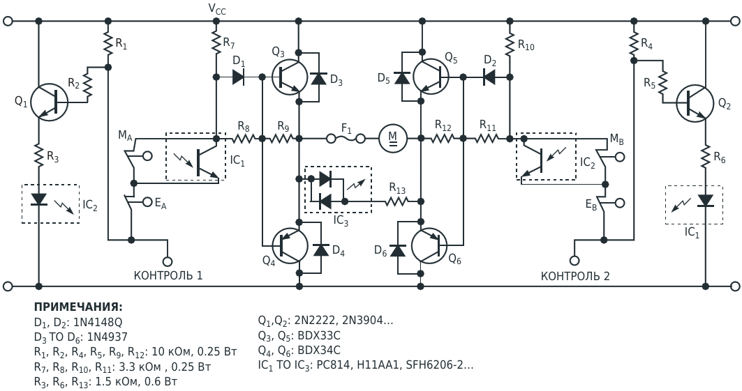 Схема управления двигателем с двумя выходами обеспечивает четыре положения