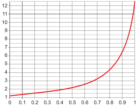 Рисунок 3. График, обратный Рисунку 2, или коэффициент заполнения ШИМ D, необходимый для получения любого заданного V