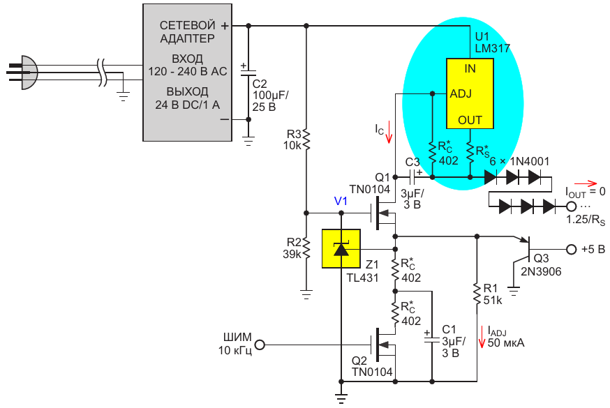 Источник постоянного тока на основе регулятора LM317, программируемого ШИМ