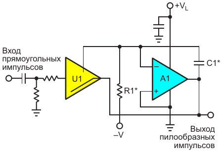 Преобразование прямоугольных импульсов в пилообразные