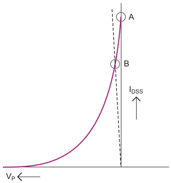 Стандартная зависимость тока сток-исток n-канального JFET от напряжения затвор-исток