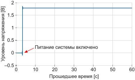 Осциллограмма напряжения в неинвертирующем узле операционного усилителя (косвенный показатель интенсивности выходного излучения лазера)