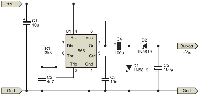 Инвертор: 12 В на входе, -12 В на выходе (номинальное значение)