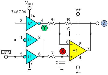 (MSBY+LSBY/256)/256. Резисторы, отмеченные звездочкой, имеют точность 0.25%. Предполагается, что частота ШИМ (F