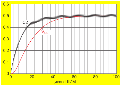 Рисунок 3. Время установления, необходимое для достижения полной точности, составляет примерно 100 циклов ШИМ, или 10 мс при частоте F
