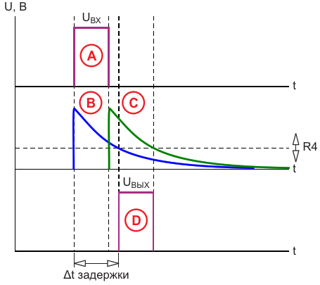 Схема задержки редких или одиночных импульсов на регулируемый временной интервал