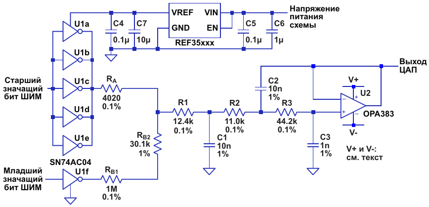 16-битный ЦАП с ШИМ-управлением. Конденсаторы C