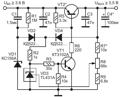 Компенсационные стабилизаторы напряжения на переключающихся диодах запуска