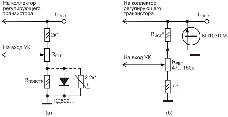 Рисунок 6. Способы температурной компенсации стабилизатора напряжения