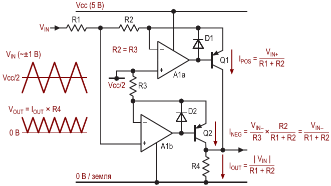 Рисунок 2. Из пары источников тока можно создать новый двухполупериодный выпрямитель