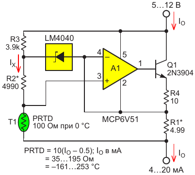 Простой, но точный двухпроводный передатчик токовой петли 4-20 мА для платинового датчика температуры