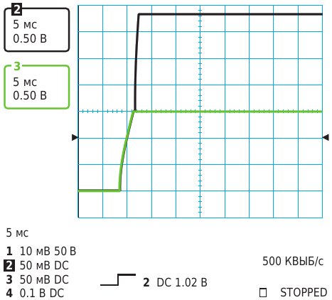 Рисунок 3. Эти осциллограммы, заметно отличающиеся от осциллограмм на Рисунке 2, демонстрируют результаты одновременного включения