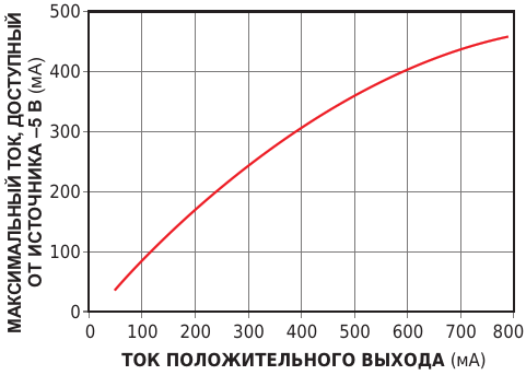 Рисунок 3. Эта кривая демонстрирует зависимость максимального тока, доступного на отрицательном выходе, от тока положительного выхода
