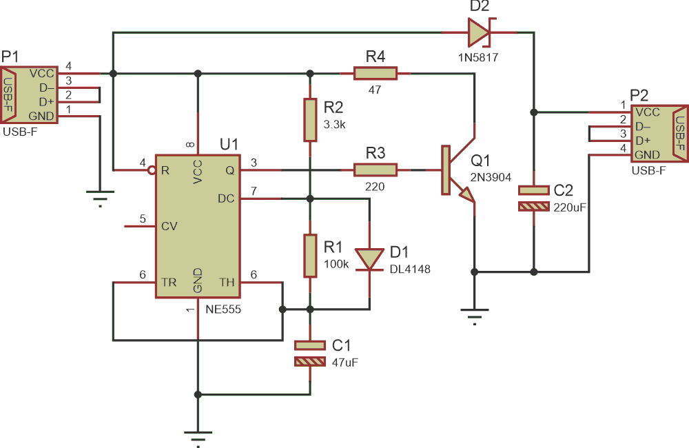 Внешние аккумуляторы обычно отслеживают ток, потребляемый от USB, чтобы определить, заряжен ли подключенный мобильный телефон, и если да, отключают выход. Эта функция полезна для обычных целей или самодельных схем, потребляющих ток более 100 миллиампер, но не подходит для небольших схем с током питания менее 100 мА.