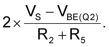 Число «2» обусловлено тем, что токи, протекающие через резисторы R2 и R1 идентичны (без учета влияния эффекта Эрли на транзистор Q1). Ток через R1 практически постоянен независимо от значения VGS. Этот ток обеспечивает работу регулятора U1.